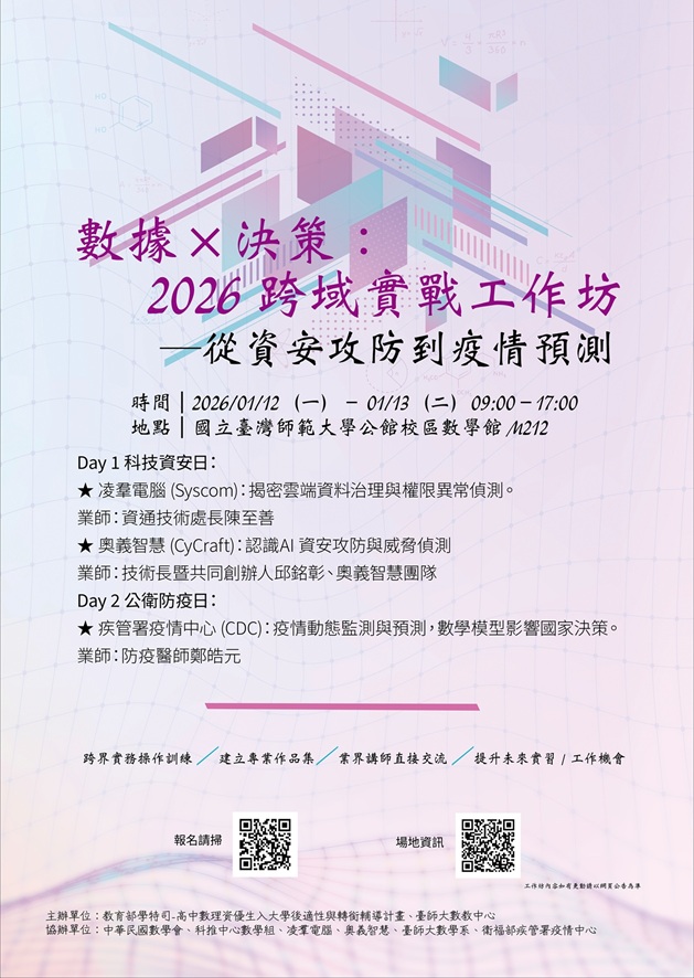 活動網頁:https://sites.google.com/view/2026workshop-winterbreak